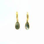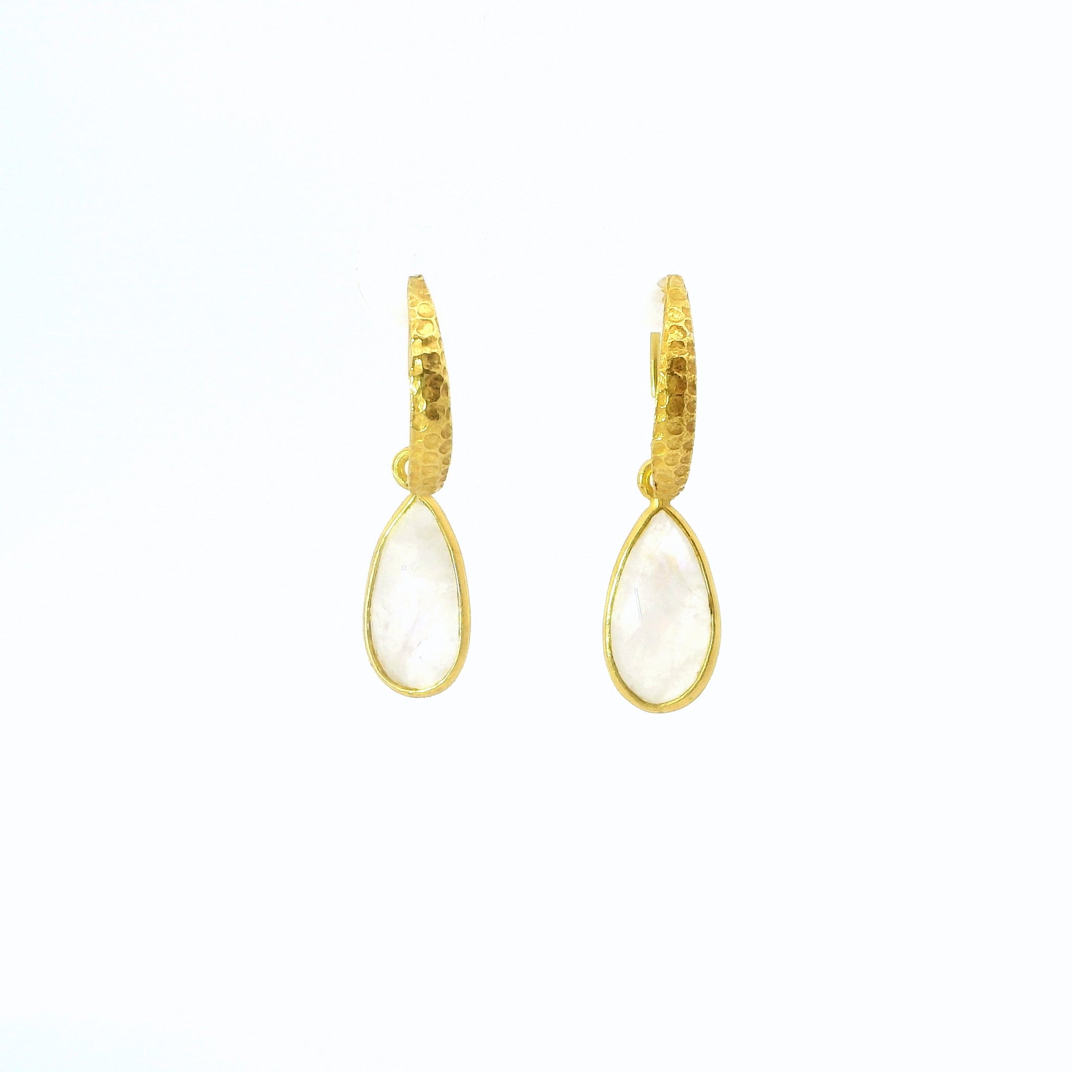 Simplizität trifft Eleganz! Ein in vergoldetem Silber gefasster Naturstein wird von einer texturierten Creole gehalten und verleiht seiner Trägerin das gewisse Etwas.