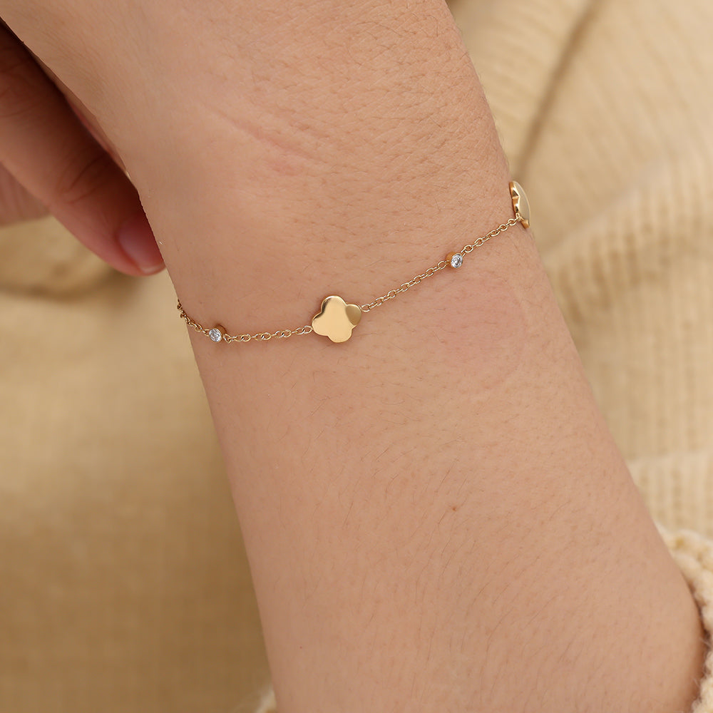 Dieses elegante Armband überzeugt durch sein feines Muster und funkelnde Zirkonva-Steine, die dezent zwischen den Gliedern eingesetzt sind. Die 14-Karat-Vergoldung verleiht dem Schmuckstück einen edlen Glanz, während das hochwertige Material für Langlebigkeit sorgt.