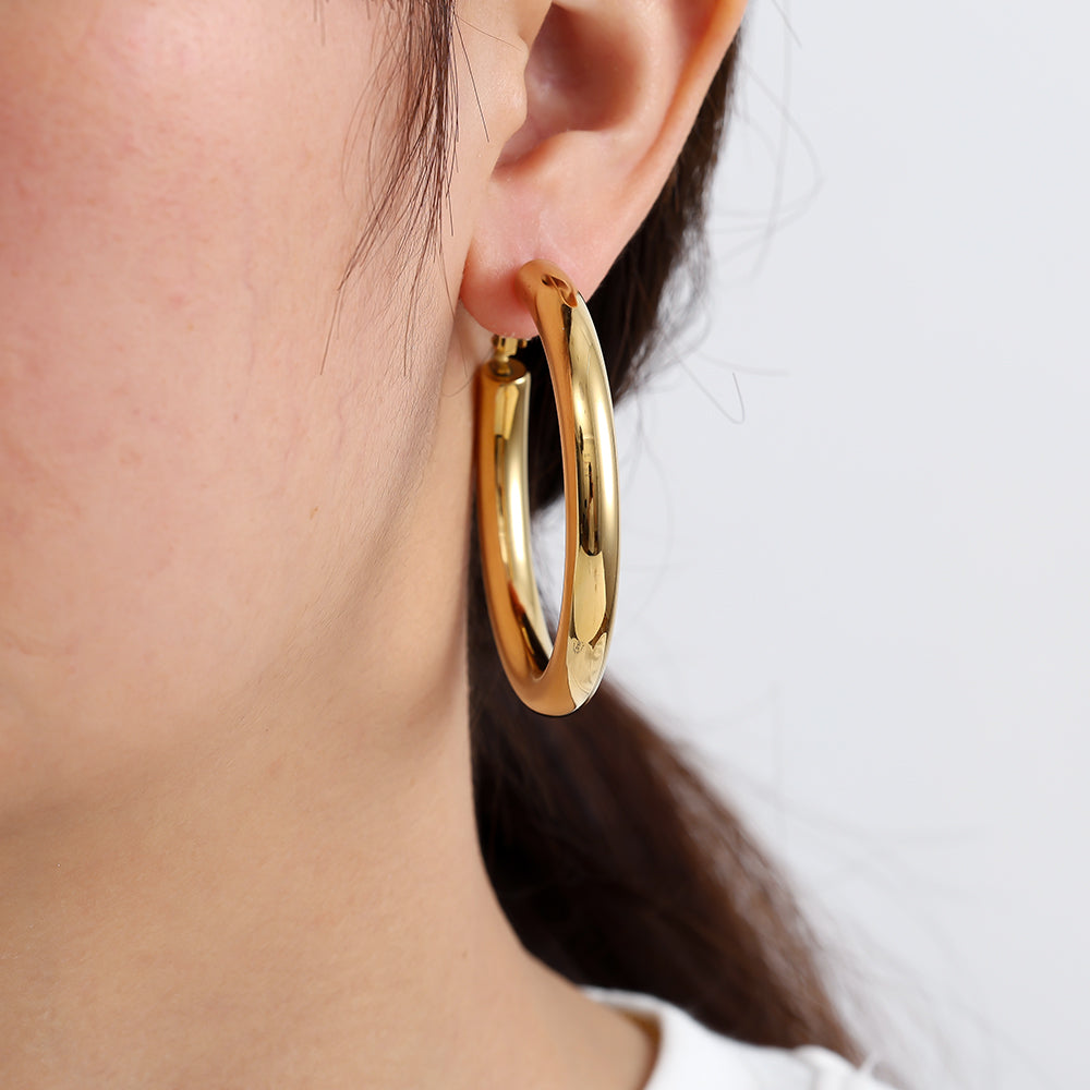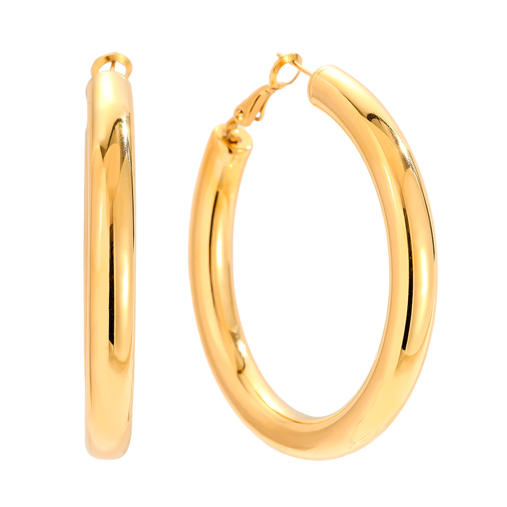 Die Big & Basic Creolen aus Edelstahl mit 14K Vergoldung überzeugen durch ihr zeitloses, schlichtes Design und ihren warmen Glanz. Die Creolen sind auch wasserfest und sind somit langlebig - vielseitige Begleiter für jeden Tag und besondere Anlässe!