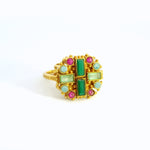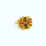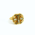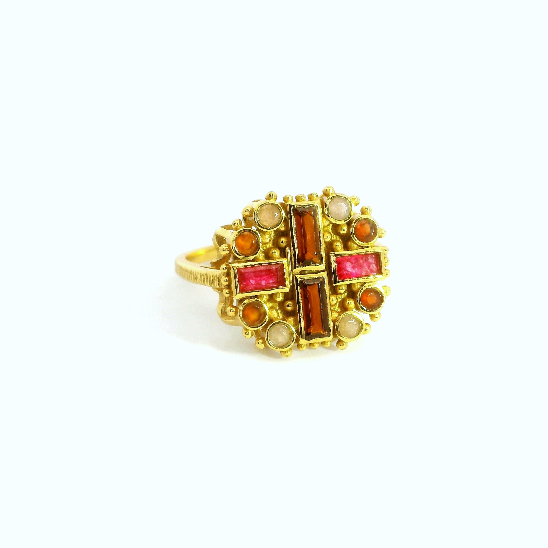 Einzigartige Formensprache  und edle Natursteine-unser Byzantia Ring kombiniert beides! Der Ring aus vergoldetem Sterlingsilber vereint verschiedene Steine zu einem robusten Design.