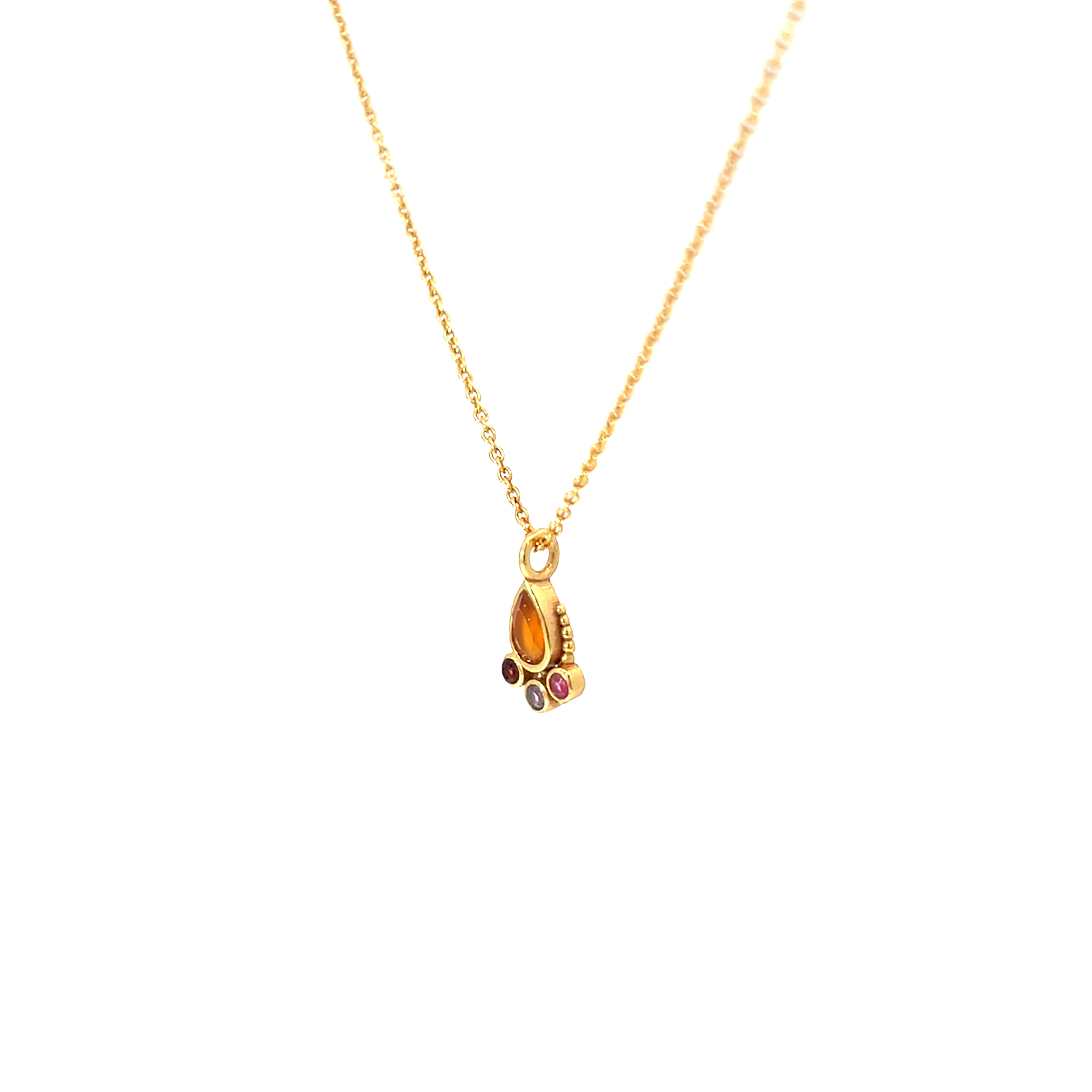 There is beauty in simplicity. Unsere Cherin Halskette wurde mit viel Liebe zum Detail handgefertigt. Bestehend aus vergoldetem 925 Sterling Silber bildet dieses Accessoire durch seine bunten Edelstein ein Sinnbild für Zartheit und Magie. Lasst uns durch die Schönheit dieser Kette den Frühling erwecken.