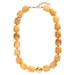 Unsere Chunky Halskette aus vergoldetem Edelstahl (14) ist ein wahres Statement-Piece! Große, leicht transparente Resin-Elemente in einem warmen Beigeton reflektieren das Licht sanft.