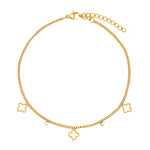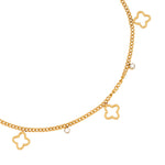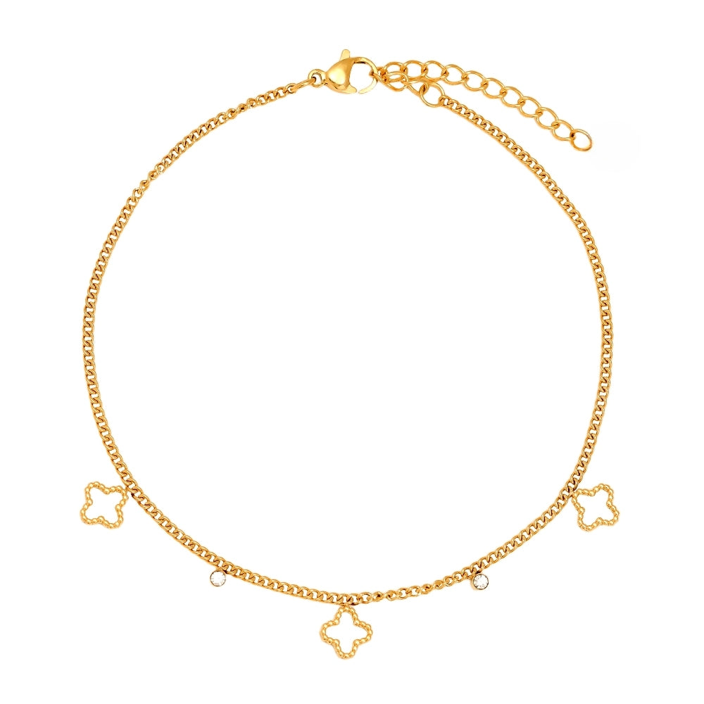 Unsere Clover Lover Fußkette kombiniert geschickt das klassische Kleeblattdesign mit funkelnden Zirkoniasteinchen. Für alle, die's dezent und glitzernd mögen!