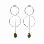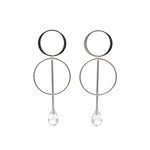Diese modernen Ohrringe aus 925 Sterlingssilber überzeugen durch ihr minimalistisches Design mit zwei ineinander gesetzten Kreisen. Dier untere, längere Stab ist beweglich und nicht fixiert, wodurch die Ohrringe bei jeder Bewegung sanft mitschwingen und eine lebendige Leichtigkeit erhalten.