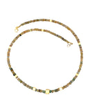 Eine elegante  Opalkette ,43cm lang, die durch ihre schimmernden Farbspiele und den tiefen Glanz des Opals besticht. Die zarten Opalperlen leuchten in verschiedenen Nuancen von Blau, Grün und Violett und wirken wie ein funkelnder Nachthimmel.