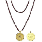 Die Kombination aus echter Pflaumen- Jade und tiefrotem Granat verleiht der Kette eine besondere Ausstrahlung – harmonisch, kraftvoll und zugleich elegant. Durch die traditionelle Knüpftechnik entsteht ein weicher Fall und eine hochwertige, langlebige Verarbeitung.