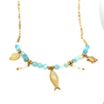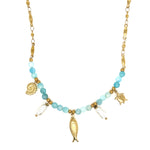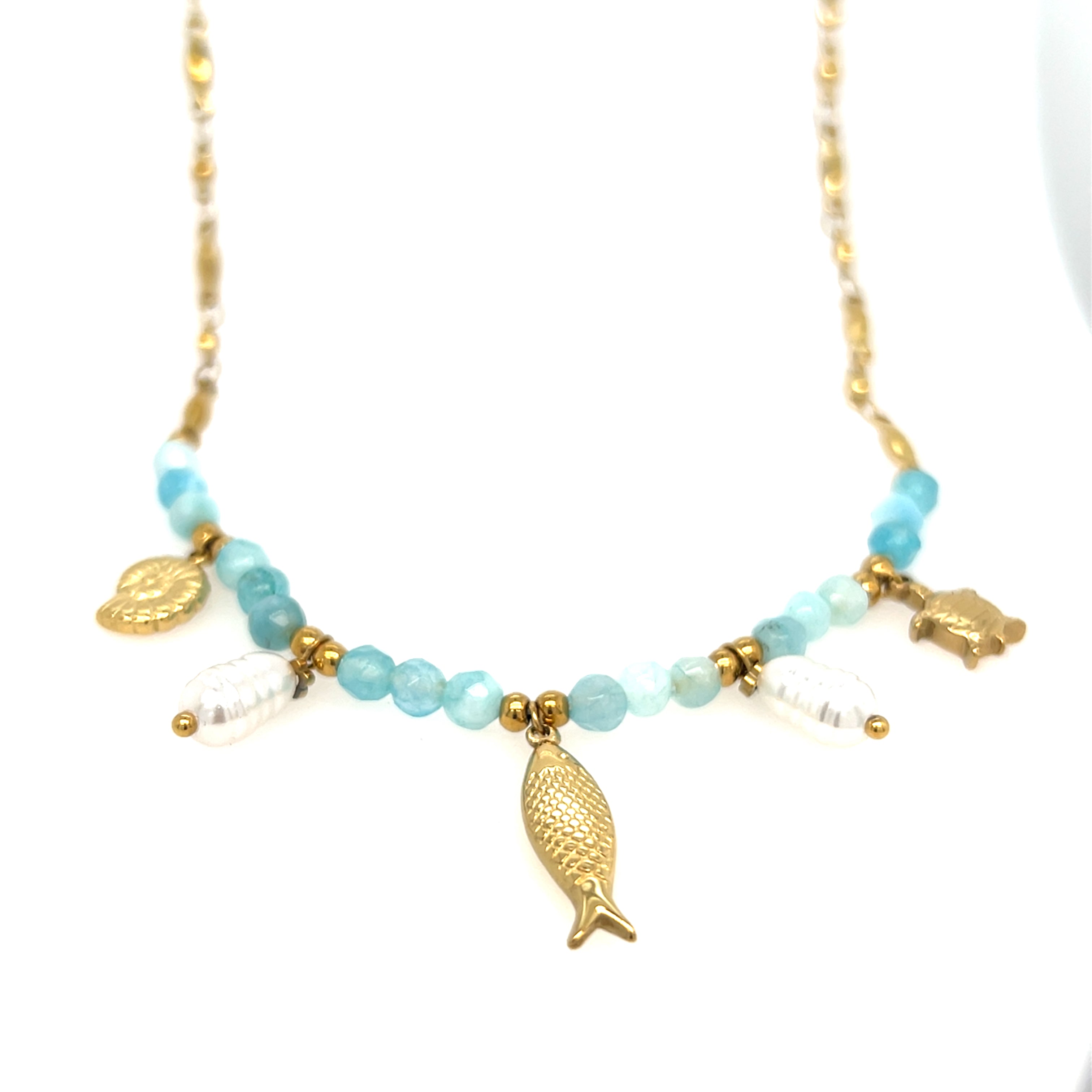 Echte Edelsteine vereint mit baumelnden Perlen und vergoldeten Charms - diese Halskette ist das perfekte Accessoire um deine Sommer Outfits abzurunden.