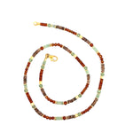 Unser Kaya Collier wurde in sorgfältiger Handarbeit gefertigt - ausgewählte Edelsteine, ein Bouquet aus Hessonit, Andalusit, Amazonia und Peridot, zieren das Schmuckstück und machen es zu einem besonderen Einzelstück. Die vergoldeten Elemente zwischen den Edelsteinen, samt dem Verschluss bestehen aus vergoldetem Sterlingsilber.