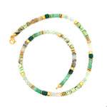 Diese elegante Halskette aus vergoldetem Silber kombiniert Lemonchrysopras und Dendritenachat zu einem einzigartigen Farbspiel in frischen Grün- und Naturtönen. Jeder Stein trägt seine eigene Energie - von Erneuerung und Vitalität bis zu Ruhe und innere Balance.