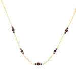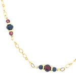 Die Lumira Halskette vereint edle Facetten aus tiefrotem Granat und königsblauem Saphir auf einer feinen, vergoldeten Silberkette. Die harmonische Kombination der Natursteine verleiht dem Schmuckstück eine zeitlose Eleganz.