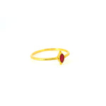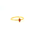 Lass dich verzaubern von der zarten Eleganz unseres Mirabai Rings! Ein zartes Ringband aus vergoldetem Silber wird in der Mitte von einem kleinen Rubin in einer feinen Fassung geschmückt. Mirabai ist der perfekte Ring für jeden Anlass, egal ob alleine oder im Stack!