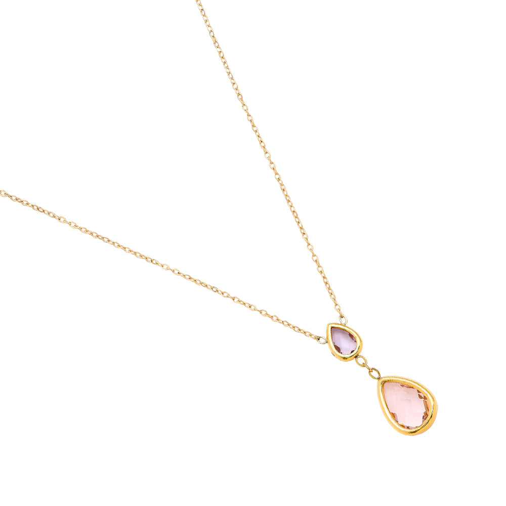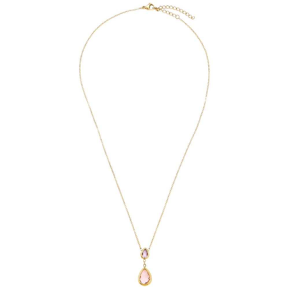 Diese zarte Kette vereint zeitlose Eleganz mit moderner Qualität. Gefertigt aus hochqualitativem Edelstahl und veredelt mit einer 14-Karat-Vergoldung, ist sie besonders langlebig und alltagstauglich. Der hellrosafarbene Tropfen-Anhänger verleiht dem Schmuckstück eine feminine, edle Note.