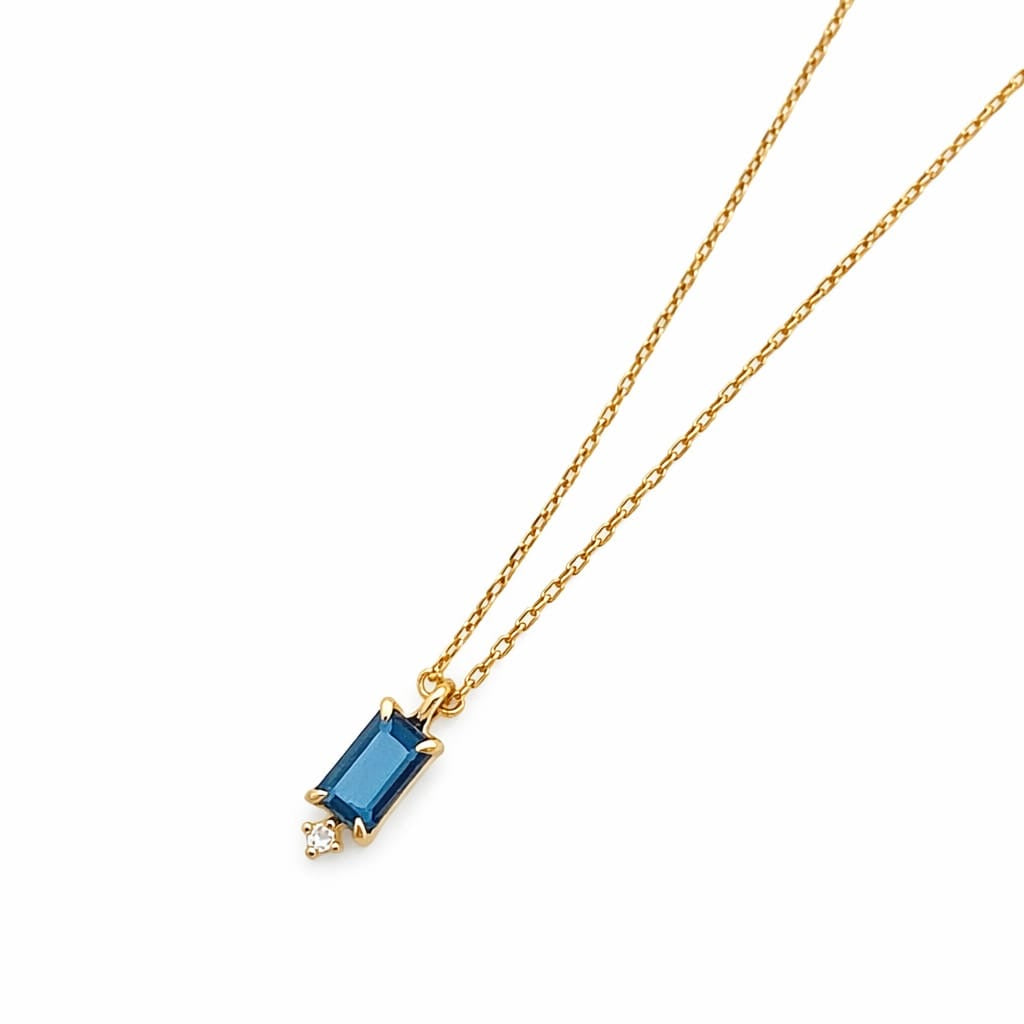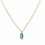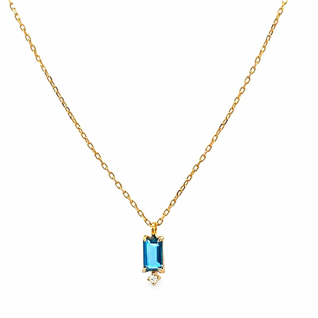 Fühl dich wie eine Prinzessin mit unserer Sania-Kette. 14 Karat Gold und ein entzückender Diamant schmiegen sich hier an einem rechteckig geschliffenen Blau Topaz und zaubern einen fast schon royalen Akzent.