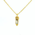 Manchmal ist weniger wirklich mehr! Unsere Soluna Halskette ist dreifach in der Länge verstellbar und wird von einem zierlichen Anhänger (Größe: 1cm) aus Labradorit und Peach-Moonstone geschmückt. Die Kette und die Fassung des Anhängers bestehen aus vergoldetem 925 Sterlingsilber.