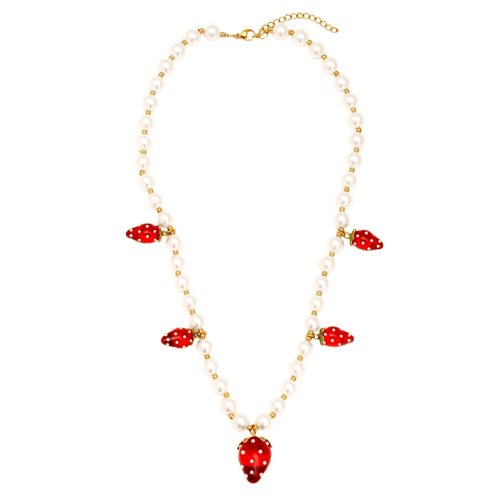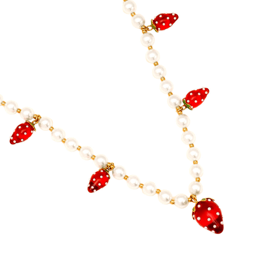 Strawberry Fields -und unsere Strawberry Love Kette macht ordentlich was her! Die süße Charm-Kette kombiniert süße Beerchen mit klassischen Perlen.
