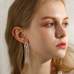 Unsere Triade Ohrringe sind wie ein Wasserfall aus funkelnden Zirkonia-Steinchen an deinem Ohr! Das gewagte Design unterstreicht das Selbstbewusstsein seiner Trägerin und kann sowohl zu besonderen Anlässen als auch einfach zu einem Coffe-Date getragen werden.