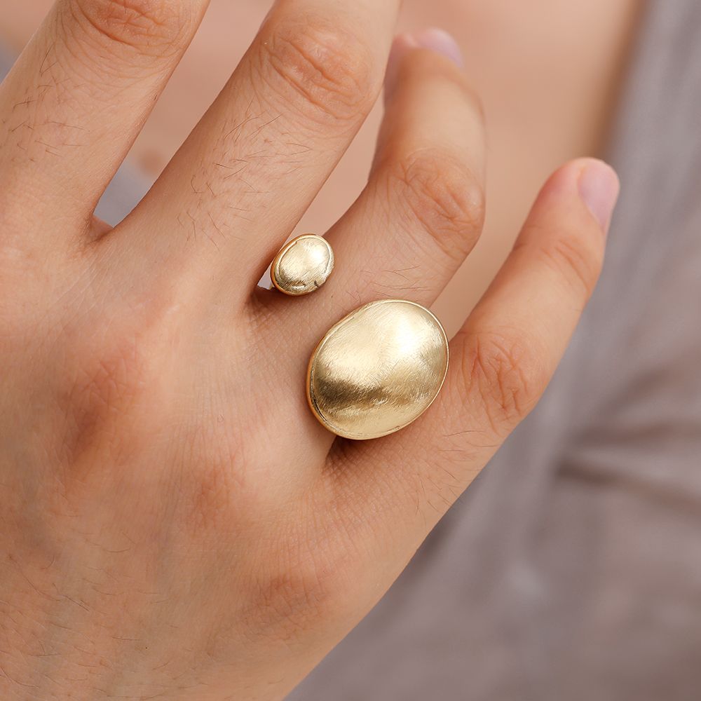 Der Two Circles Ring ist ein Hingucker aus vergoldetem Edelstahl (14K). Er ist wasserfest und somit ein ideales Statement-Schmuckstück für den Alltag oder besonderen Anlässen.
